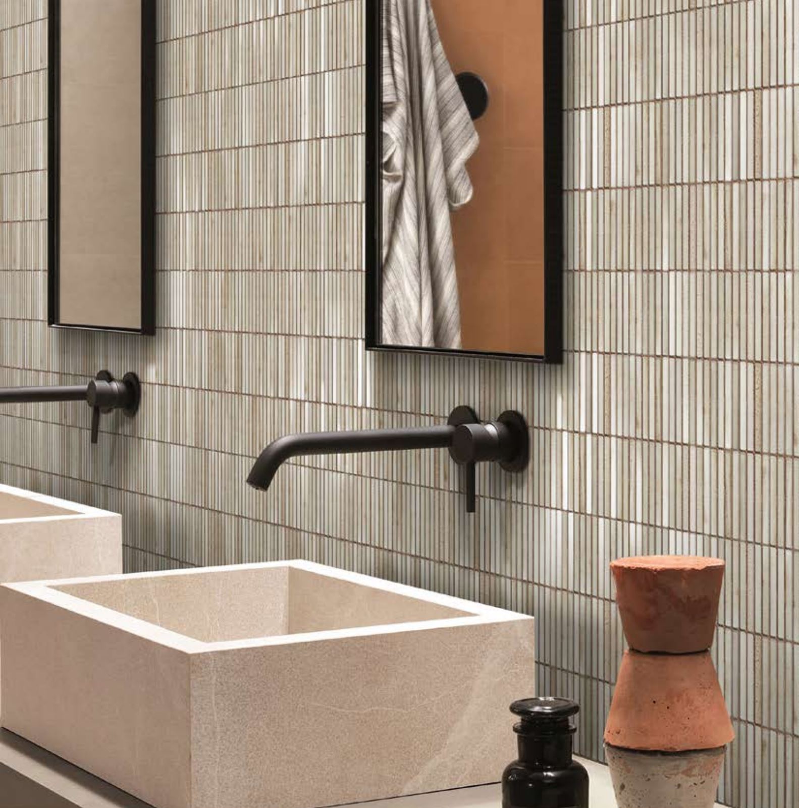 Inspired by the playful charm of the iconic Indian chocolate, the KitKat mosaic series features sleek, elongated rectangular tiles arranged in a rhythmic pattern. Its linear design brings a sense of modernity and texture, making it perfect for creating both subtle backdrops and striking feature walls. Available in a wide spectrum of colors, this versatile collection can adapt to any design style-from contemporary minimalism to warm, rustic elegance. With its timeless form and endless color possibilities, KitKat mosaics add a stylish bite of creativity to every space.