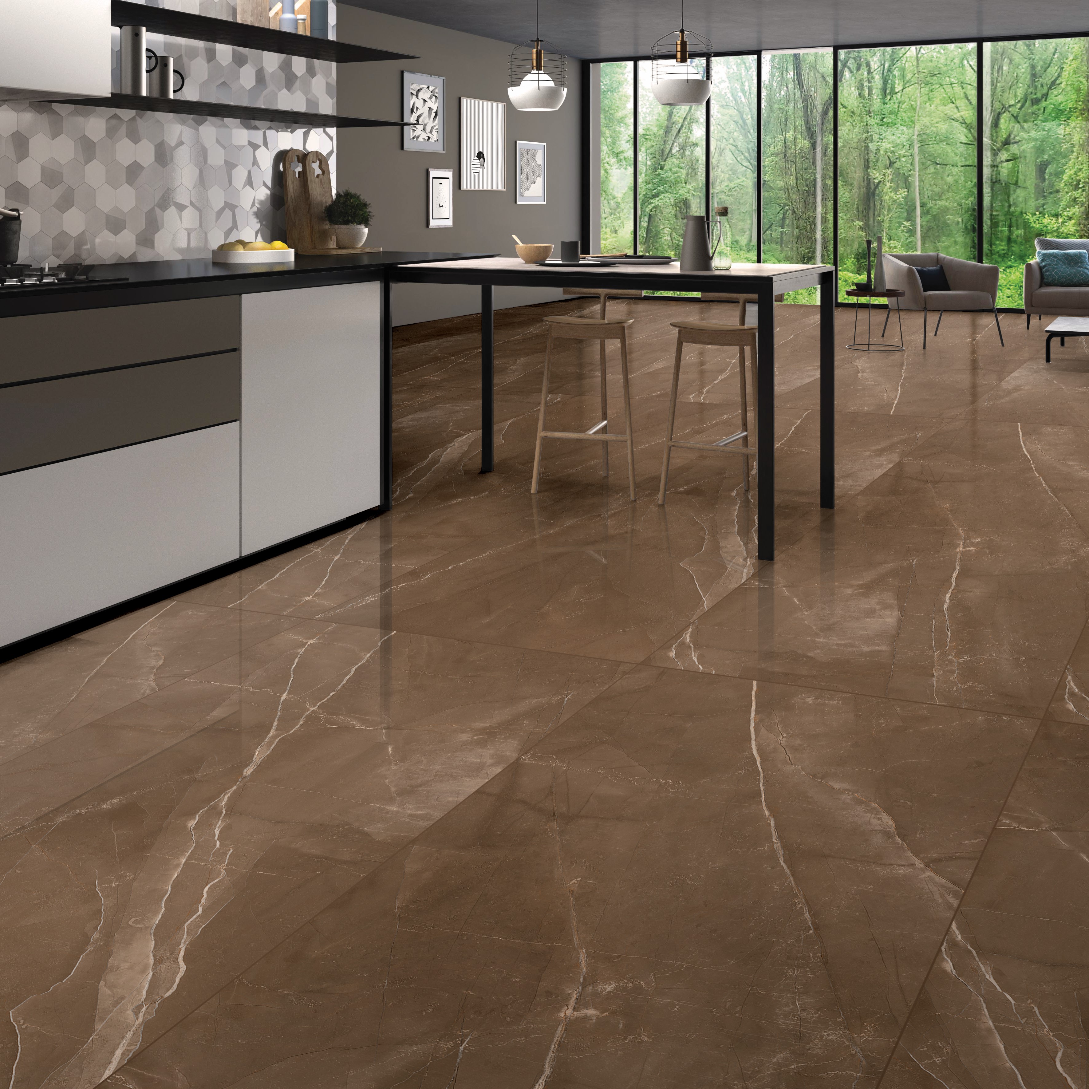 Polished brown tones evoke natural elements with a contemporary glossy finish.