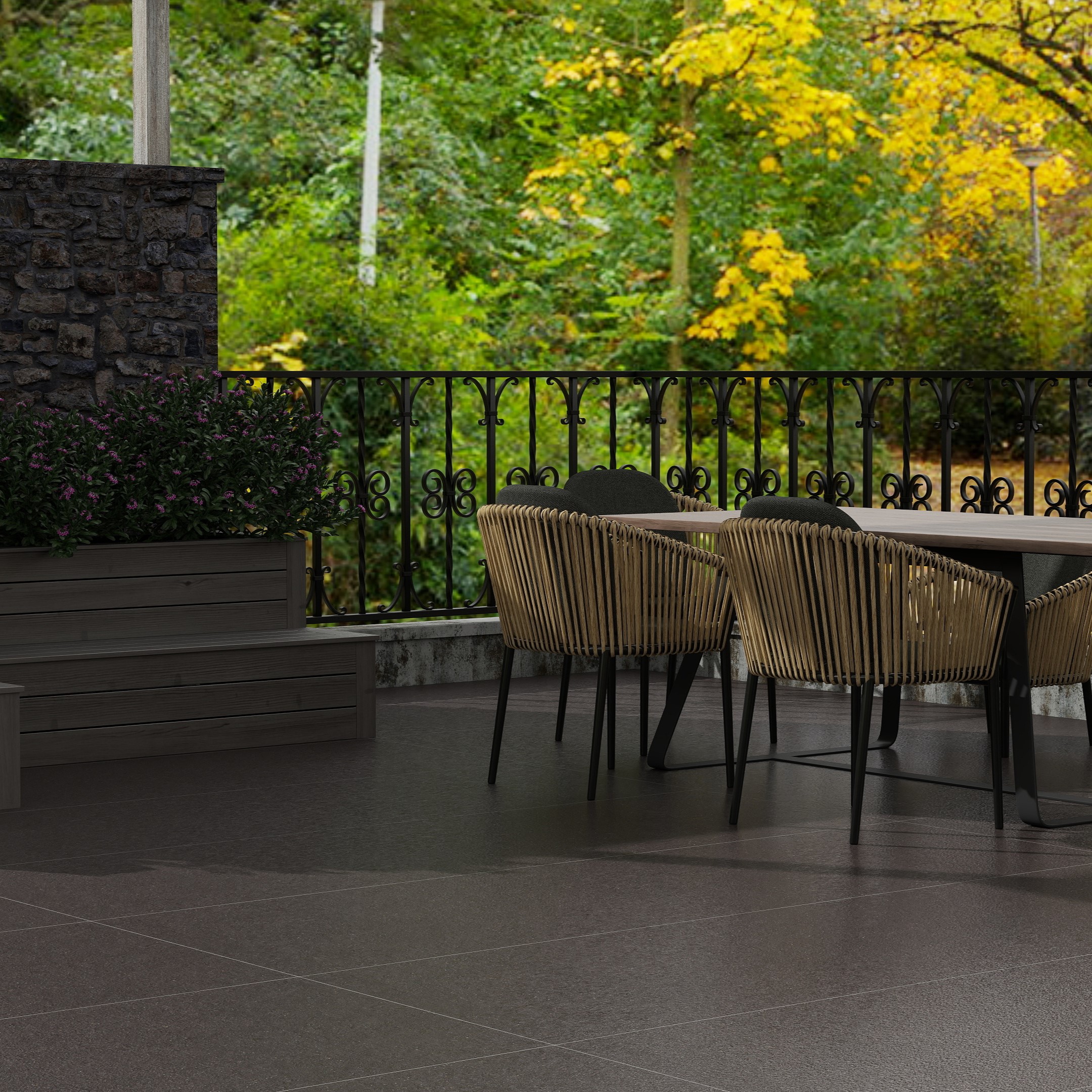 Combines a deep, sophisticated black with scattered white specks, creating a natural stone-like texture. Its rustic finish adds grip and character, making it ideal for patios, walkways, and terraces. Durable and weather-resistant, it effortlessly blends strength with style, bringing a timeless outdoor charm to any space.