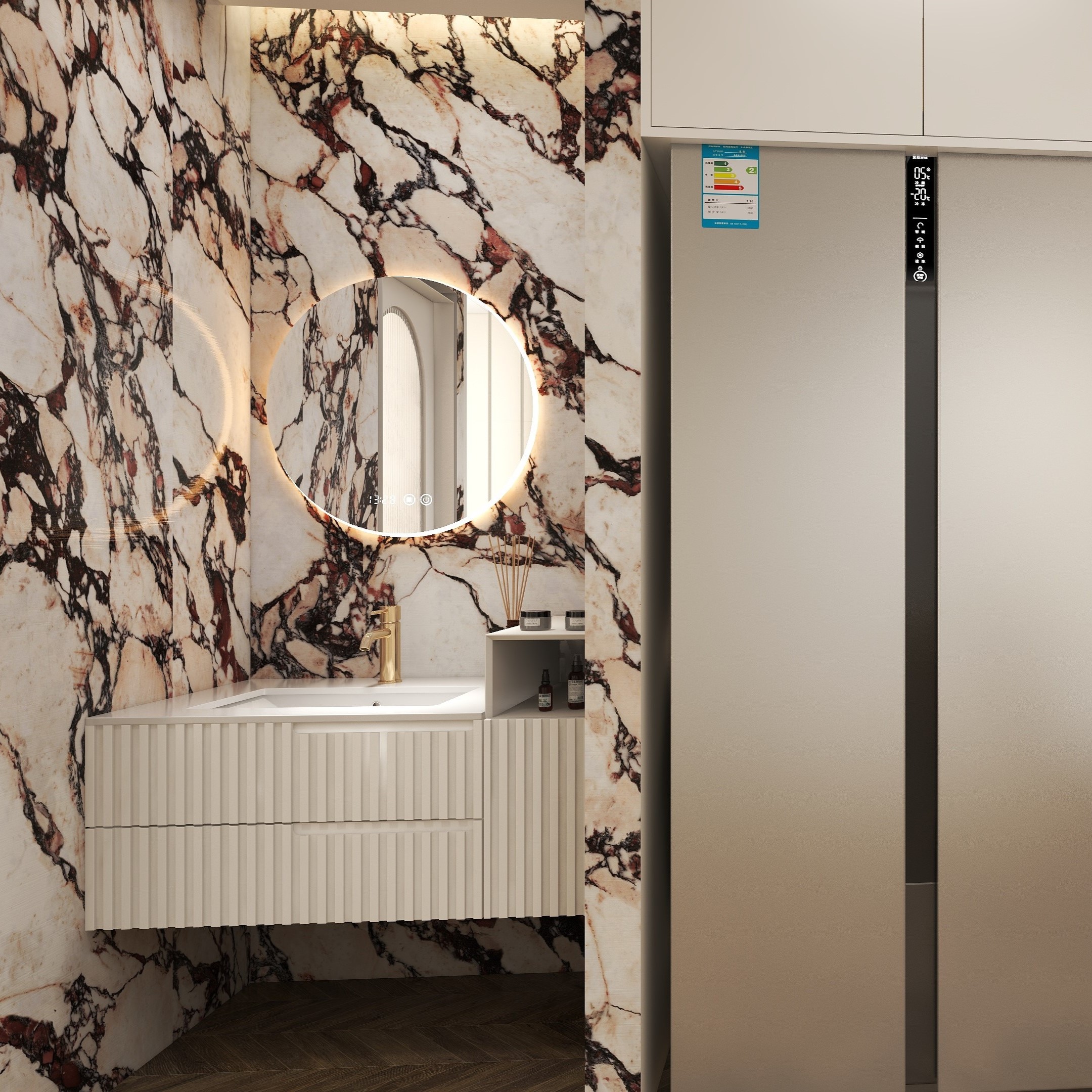 Inspired by the timeless beauty of Italian marble, Calacatta Viola features a luminous white background enriched with bold violet and deep burgundy veining. This striking contrast creates a dramatic yet elegant look, perfect for statement walls, countertops, and luxurious interiors.