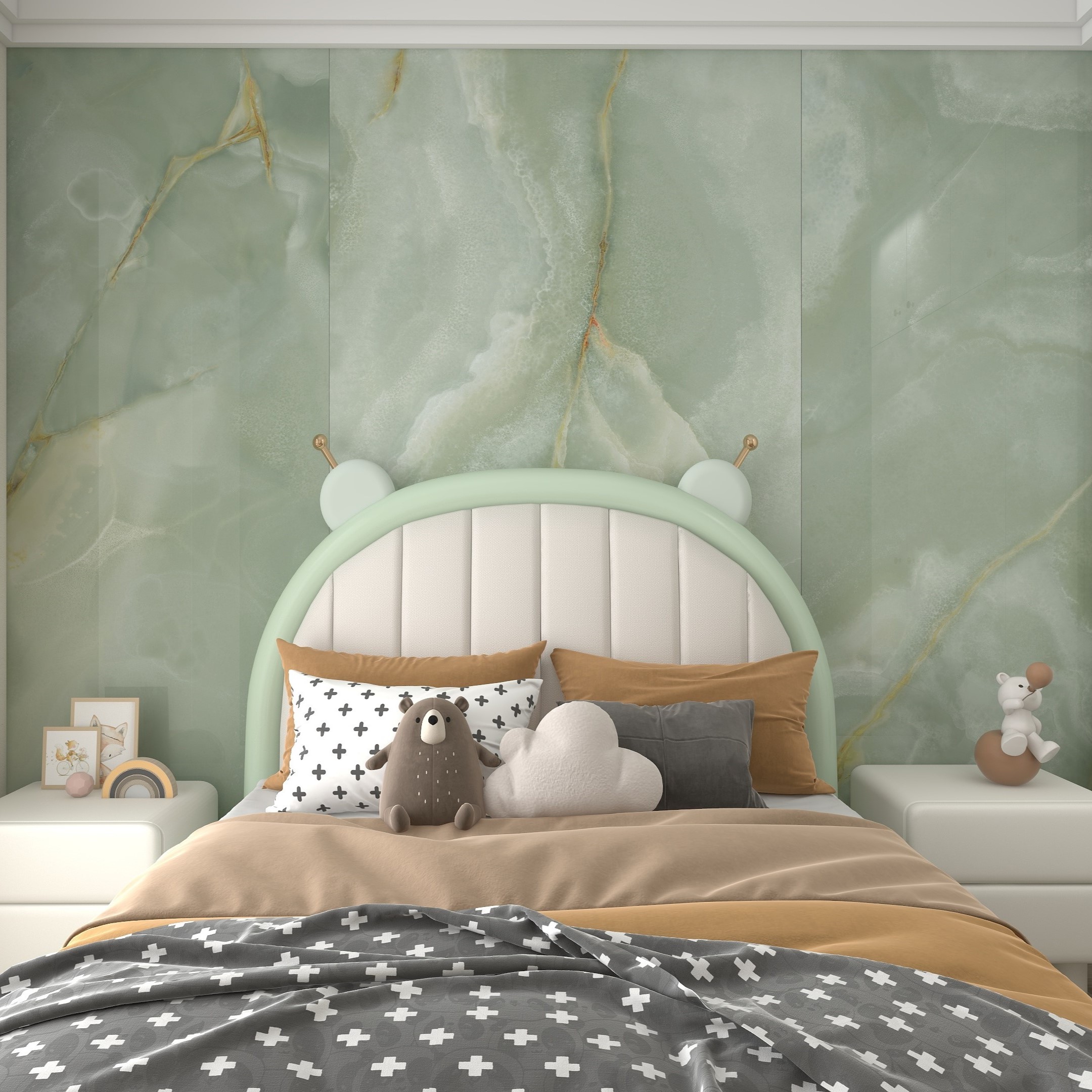 A delicate sage green tile that transforms spaces with its unique translucency. Light gently flows through its surface, casting a subtle glow that elevates the ambiance with a sense of calm and sophistication.
