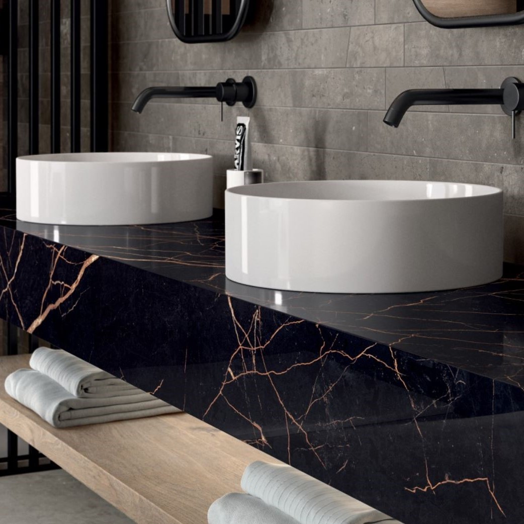 Absolute elegance for the precious black marble of North African origin, known as Saint Laurent or Port Laurent, characterized by contrasting veins of warm color.