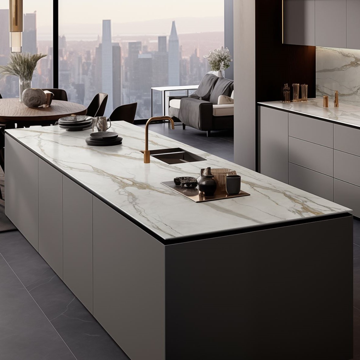 This exquisite porcelain tile captures the luxurious allure of natural Calacatta marble, featuring a pristine white base with dramatic gold veining. Its bold, elegant patterns create a striking sense of depth and sophistication, making it perfect for feature walls, countertops, or floors that demand a timeless, high-end statement.