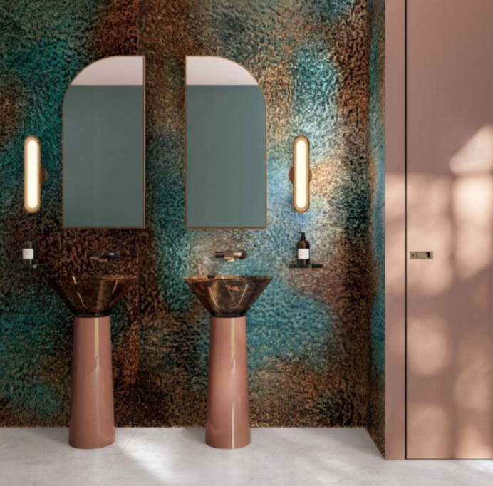 Evoking the beauty of ice frozen on glass, this slab features a captivating blend of blue and brown tones. Its textured, crystalline appearance adds depth and intrigue, making it perfect for feature walls that bring a cool, sophisticated, and artistic touch to any interior.