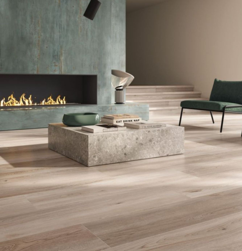 The Rebel collection stands out for its visually striking surface with translucent effects and colour contrasts typical of wear, recreating the appeal of aged materials with stains and traces of rust.