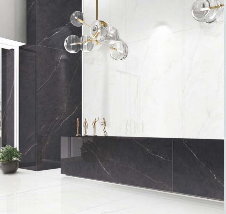 This pure white tile features very subtle, delicate veining, offering a clean and serene aesthetic. Its smooth, polished surface enhances brightness and openness, making it ideal for creating light-filled interiors with a calm, timeless appeal.