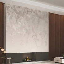 This beige tile features a delicate silver leaf texture that catches the light, creating a subtle shimmer and visual interest.